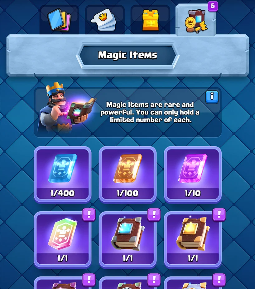 Magic Items were added in the first 2021 Clash Royale update. They help you to upgrade your cards and progress faster!